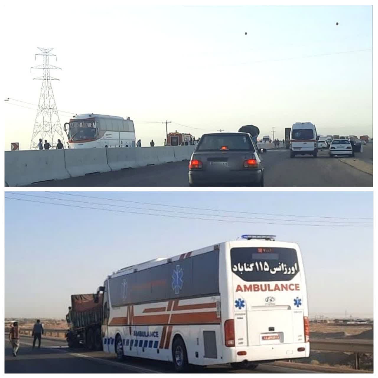 به گزارش روابط عمومی اورژانس ۱۱۵ گناباد، اسماعیلزاده رئیس این مرکز با اعلام این خبر گفت: در ساعت ۴:۵۸ صبح پنجشنبه ۱۲ تیر ماه طی برقراری تماس با مرکز ارتباطات مبنی بر تصادف پنج خودرو کامیون، ۲۰۶, پراید، کیا و اتوبوس در کیلومتر ۳ جاده گناباد به قاین بلافاصله سه کد عملیاتی سبک، خودروی فرماندهی و یک دستگاه اتوبوس آمبولانس به محل حادثه اعزام شدند.