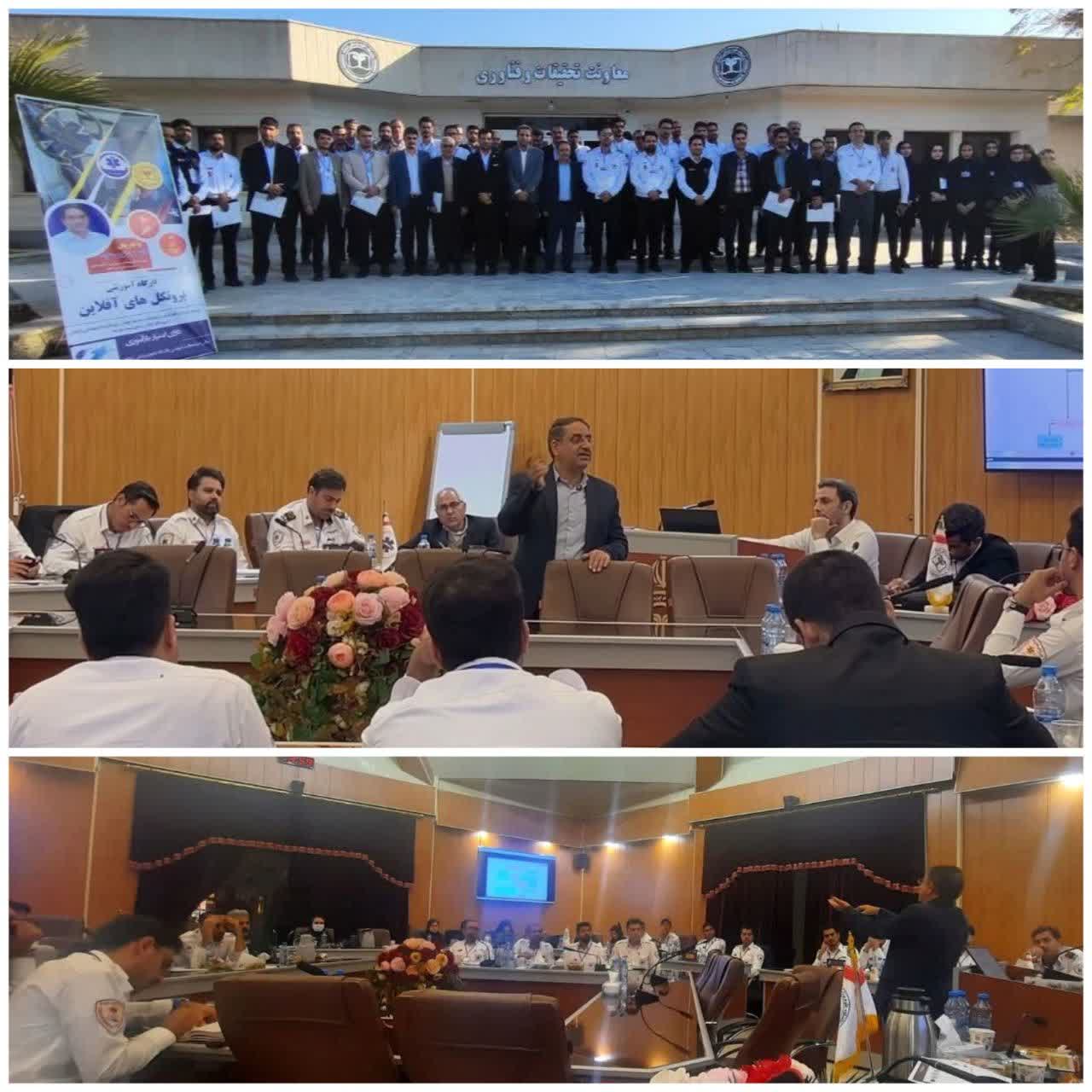 نشست تخصصی "پروتکلهای آفلاین" در اورژانس پیشبیمارستانی با حضور نمایندگانی از مراکز اورژانس دانشگاههای قطب شمال شرق کشور (معاونین عملیات و مسئولین آموزش)، پزشکان مراکز ارتباطات، پزشکان مراکز بهداشتی و درمانی، مسئولین بیمارستانی درگیر در مدیریت بیماران ارجاعی توسط اورژانس ۱۱۵ و همچنین پرسنل عملیاتی پایگاه های اورژانس و کارشناسان مرکز ارتباطات در دانشگاه علوم پزشکی گناباد برگزار شد.